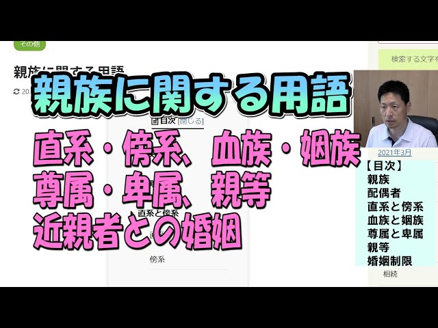 親族とは、6親等内の血族、配偶者、及び3親等内の姻族を指します。親族の定義では、「親等」、「血族」、「姻族」という用語が現れており、親族の理解は意外と容易ではありません。